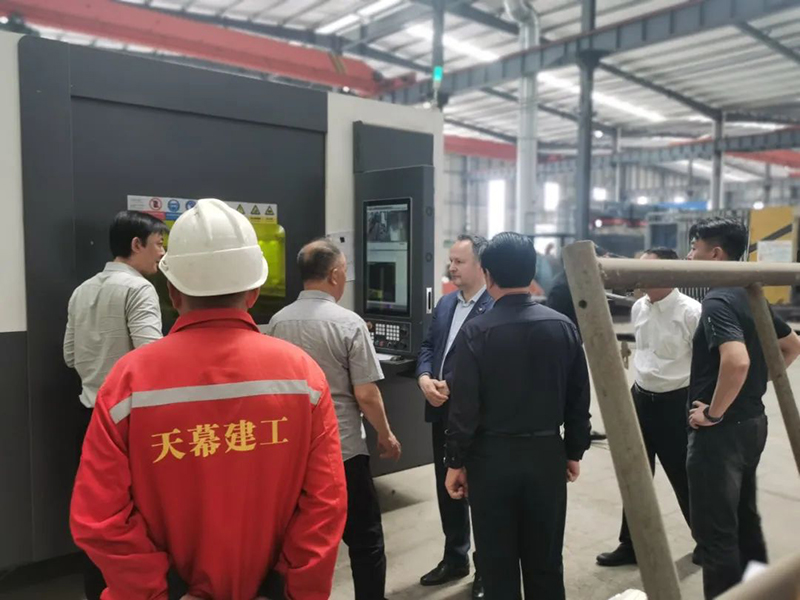 座談會(huì)后,在公司領(lǐng)導(dǎo)的陪同下,匈牙利嘉賓一行參觀了公司的鋼結(jié)構(gòu)及門窗生產(chǎn)車間。車間內(nèi),現(xiàn)代化的生產(chǎn)設(shè)備有序運(yùn)轉(zhuǎn),嚴(yán)謹(jǐn)?shù)墓に嚵鞒毯透咚刭|(zhì)的產(chǎn)業(yè)工人,讓匈牙利嘉賓直觀感受到公司強(qiáng)大的生產(chǎn)制造能力和對(duì)品質(zhì)的嚴(yán)格把控。先進(jìn)的生產(chǎn)技術(shù)和智能化的管理模式,更是贏得了匈牙利市長(zhǎng)和皮特先生的高度贊賞。